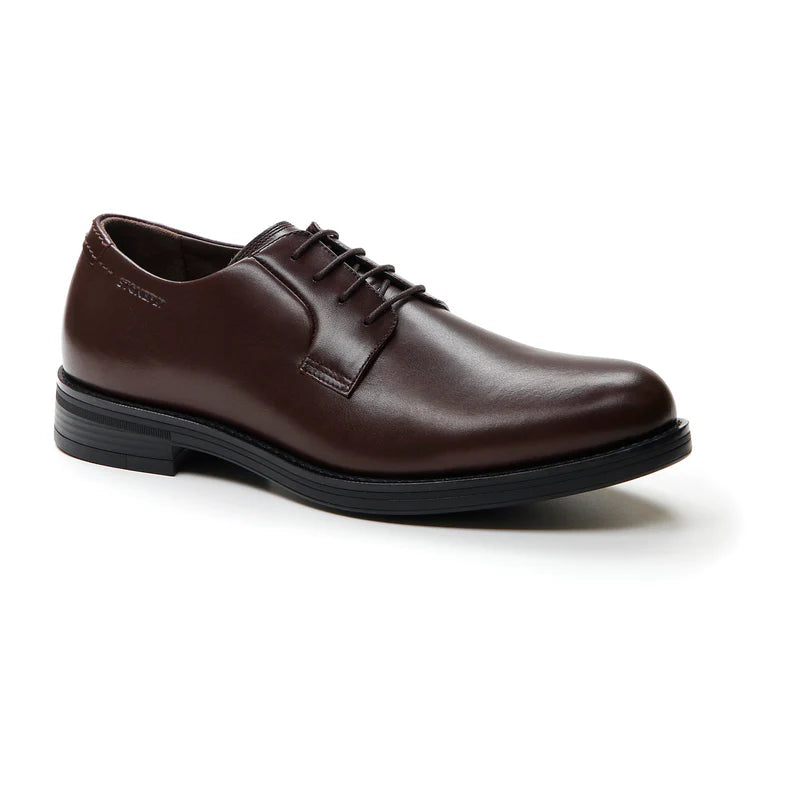Muške braon kožne derbi cipele sa regularnim krojem. Klasičan stil sa čistom i elegantnom siluetom, pravi must-have za jesenju sezonu. Udobne i elegantne, savršeno se prilagođavaju svakom izgledu, dodajući dašak klase i sofisticiranosti svakoj prilici. Blusoft® tehnologija podržava vaš hod, obezbeđujući maksimalnu udobnost i amortizaciju. Gumeni đon, visina potpetice (cm): 3,4.