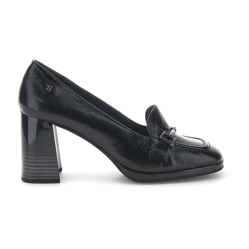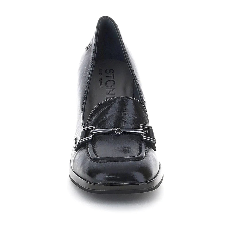Ženske crne cipele sa potpeticom od napa kože, regularnog kroja. Rafiniran i elegantan, ovaj model ima kvadratnu potpeticu koja odiše stilom, a da pri tom ne narušava udobnost. Metalna kopča dodaje dašak klase, čineći ove cipele na potpeticu savršenim izborom za formalan, ali šik izgled. Cipele sa Blusoft Memory® tehnologijom imaju poseban izvadiv ulozak sa umetkom od memorijske pene u predelu pete, koji ublažava udarce pri hodanju. Uložak je napravljen od posebnog materijala otvorenih ćelija, što obezbeđuje izuzetnu prozračnost. Gumeni đon, visina potpetice (cm): 7,5.